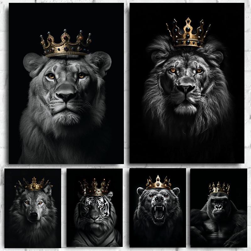 Постеры и принты с животными Король Лев Тигр Волк Орел Медведь с короной Холст Настенная живопись Мотивационная картина Комната Домашний декор