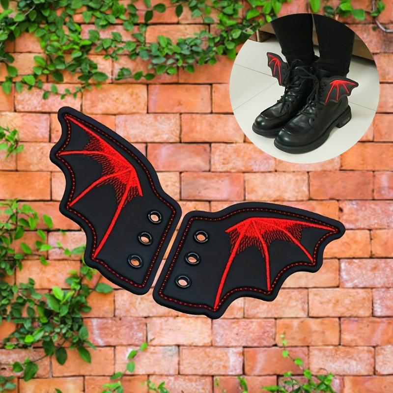 1 пара черных и красных крыльев летучей мыши для обуви, вышивка, DIY шарм, украшение для кроссовок, одежды, шнурков, панк, подарок на Хэллоуин, аксессуар