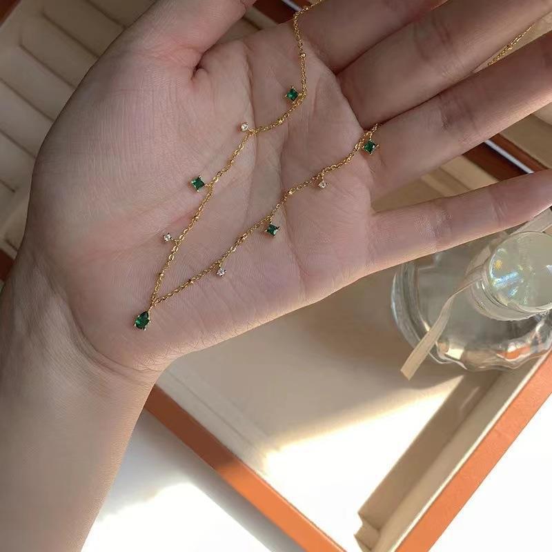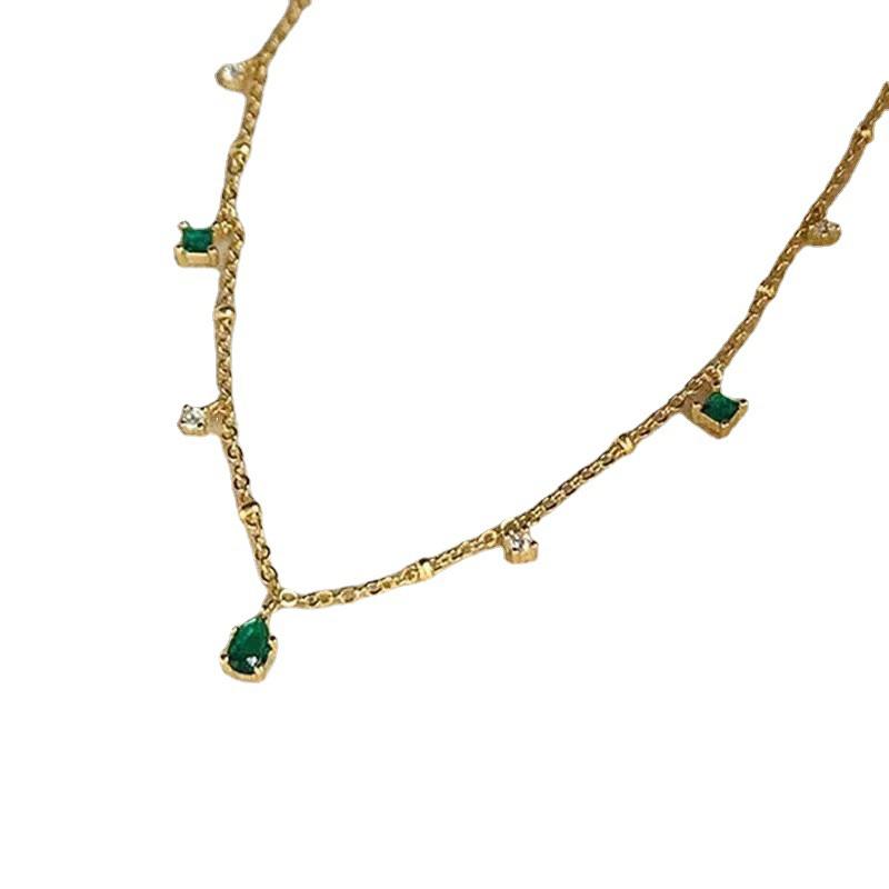 Ожерелье с инкрустацией изумруда в стиле ретро, женская цепочка на ключицу с простым темпераментом