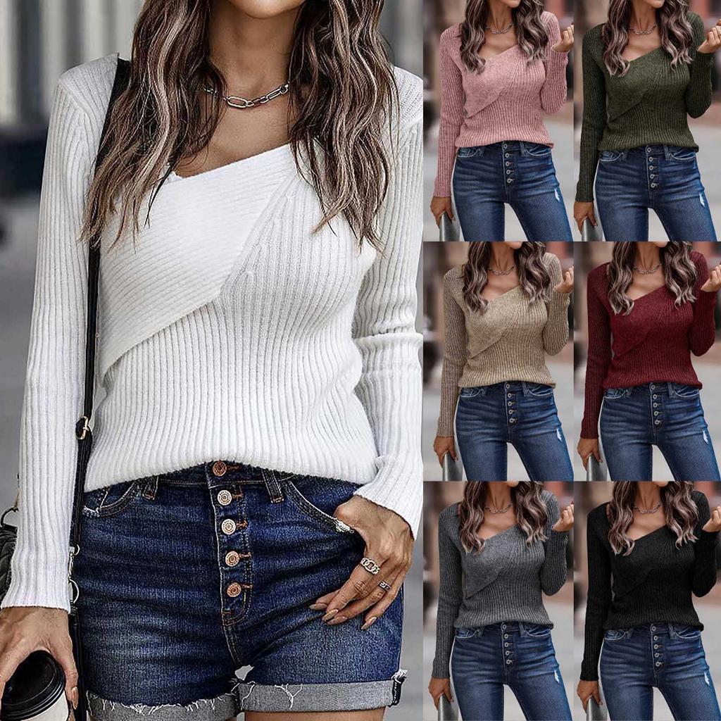 Women's Fashion Winter Solid Color Long Sleeve Low Neck Irregular Sexy Sweater