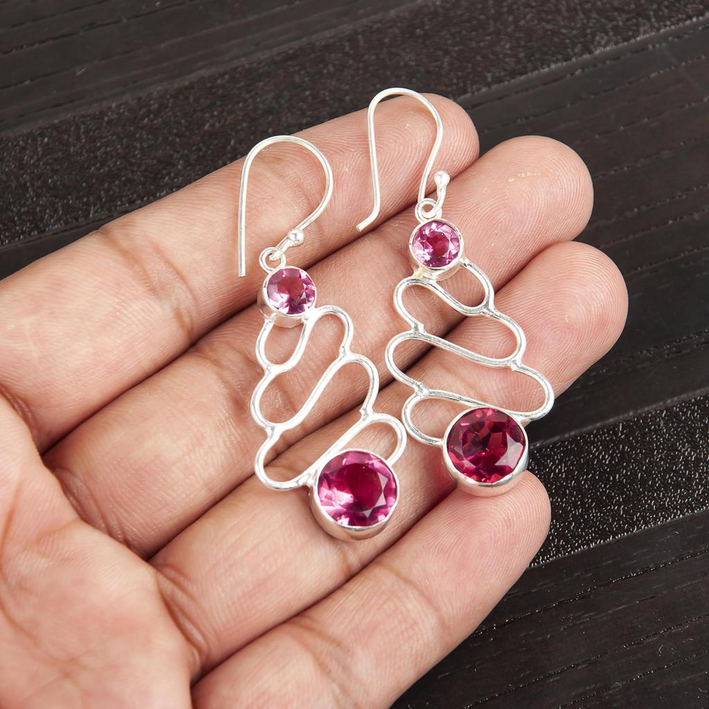 Ювелирные изделия из розового рубеллита, серьги из стерлингового серебра 925 пробы, великолепные украшения ручной работы, дизайнерские серьги в подарок для женщин