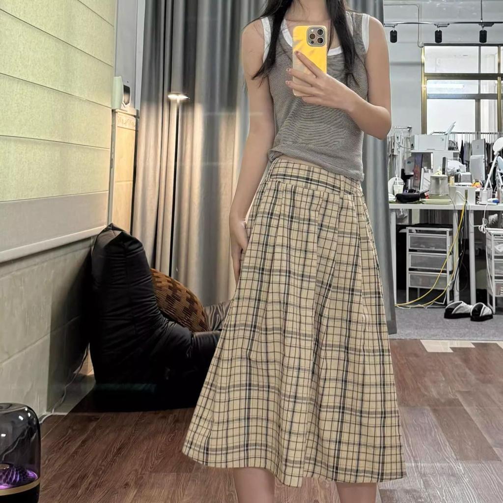 Женская летняя клетчатая миди-юбка А-силуэта с высокой талией - Стиль колледж преппи, универсальная клетчатая трендовая юбка