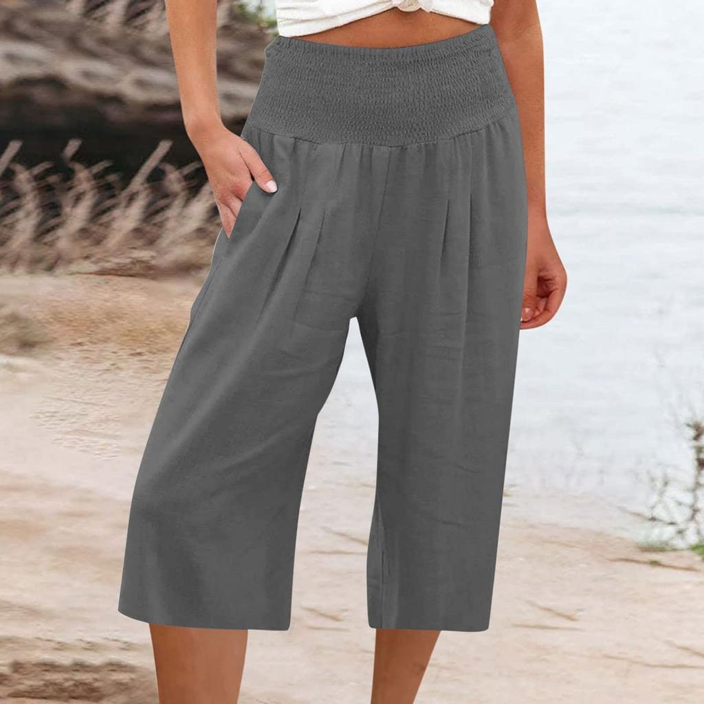 Женские однотонные повседневные эластичные брюки с высокой талией, однотонные семиточечные брюки с карманами