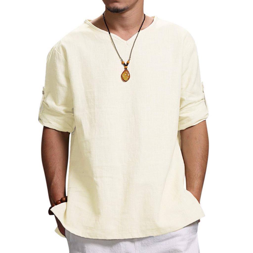 Мужские мешковатые хлопковые льняные однотонные футболки с короткими рукавами и капюшоном, топы, блузки