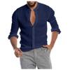 Мужская льняная повседневная рубашка с длинными рукавами без воротника с воротником-стойкой, летний топ — купить товар онлайн с бесплатной доставкой по всему миру!