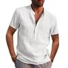 Дизайнерские весенне-летние мужские повседневные рубашки из хлопка и льна, однотонные рубашки с короткими рукавами, свободные рубашки с воротником-стойкой