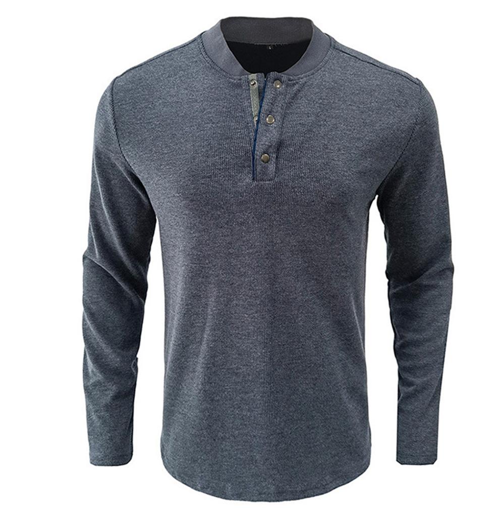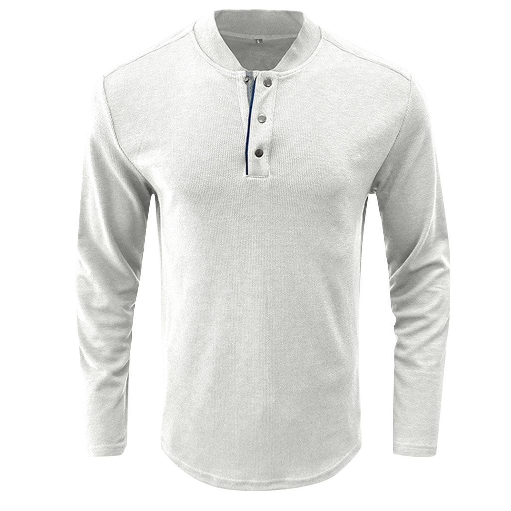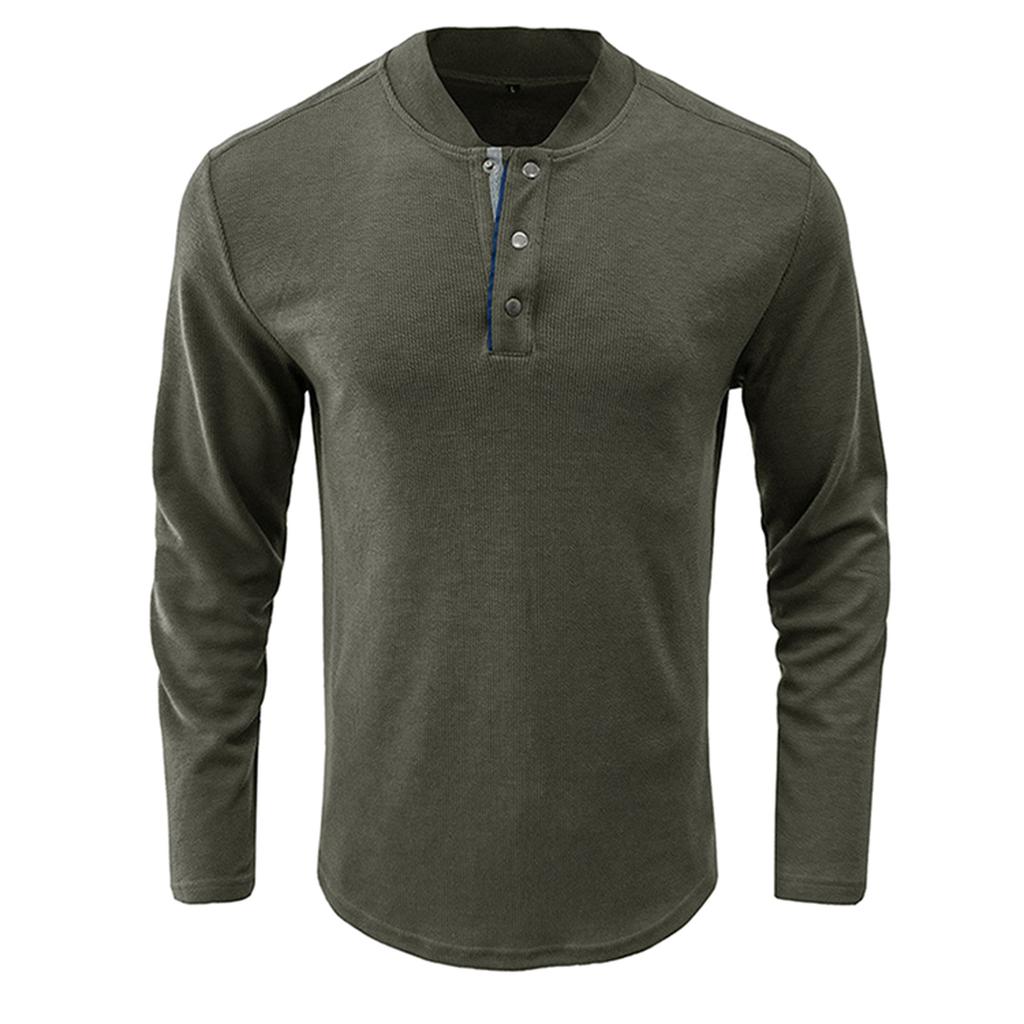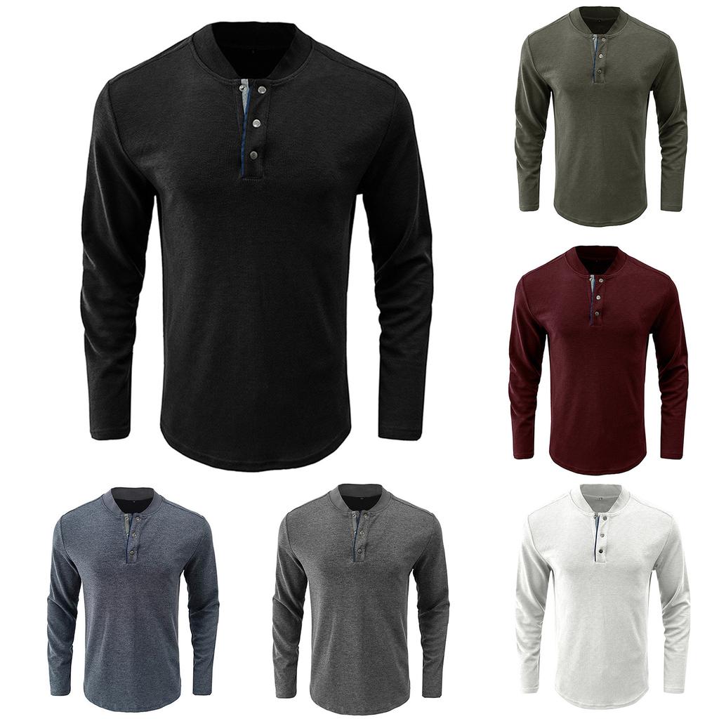 И Зимняя Мужская Футболка с Полуоткрытым Воротником Однотонная Футболка с Длинным Рукавом Повседневная Рубашка с Пуговицами