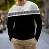 Мужская мода повседневные рубашки с круглым вырезом и длинными рукавами с принтом в полоску, топы, блузки