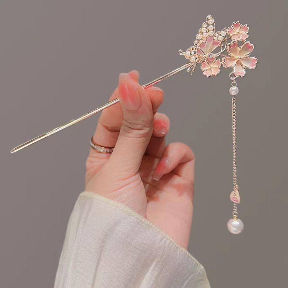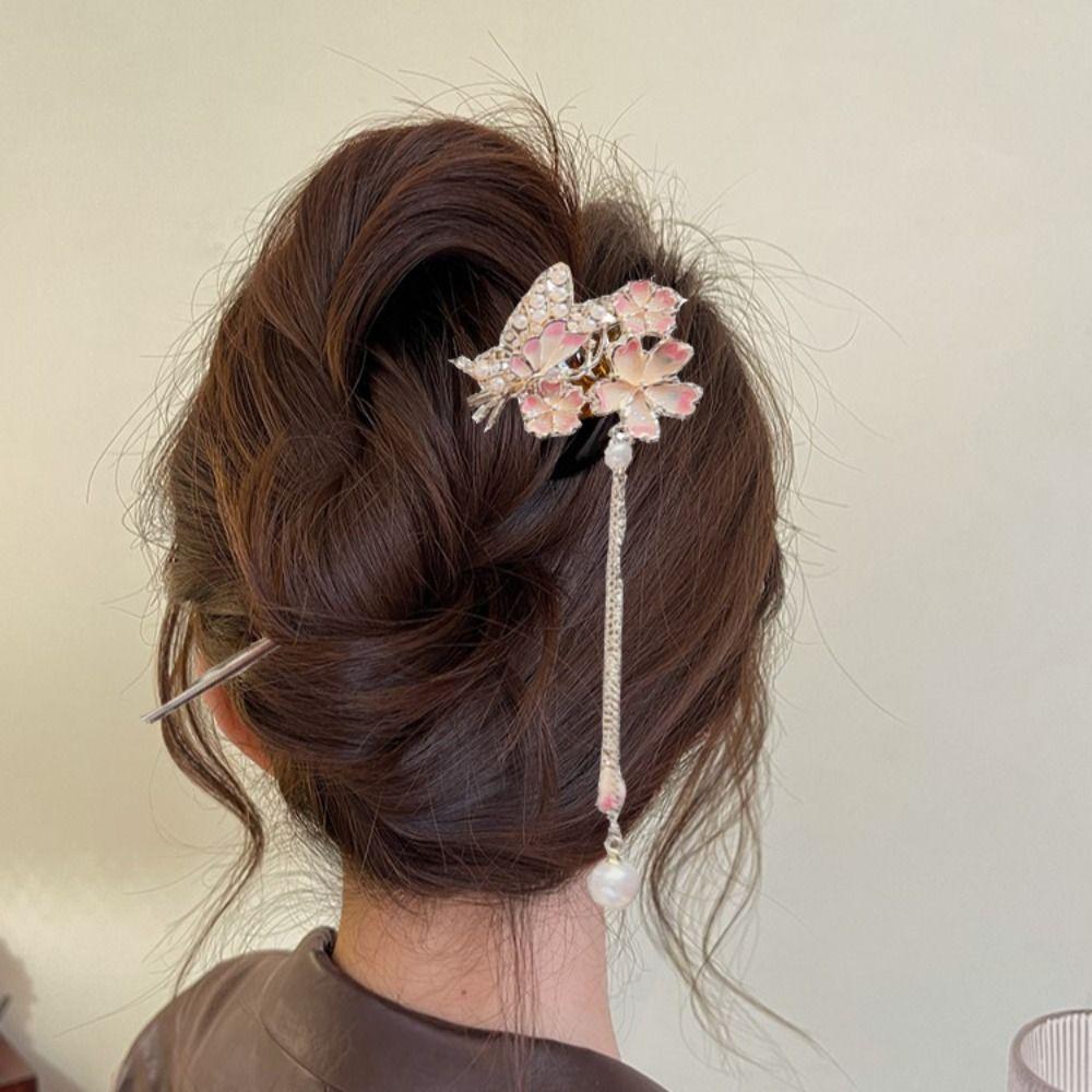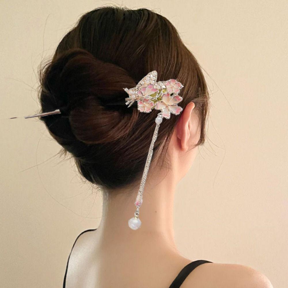 Романтические заколки для волос с цветущей сакурой, винтажные заколки для волос, головной убор для ханфу для женщин, девушек