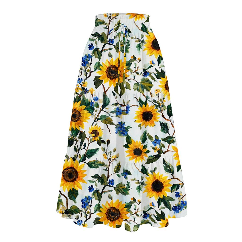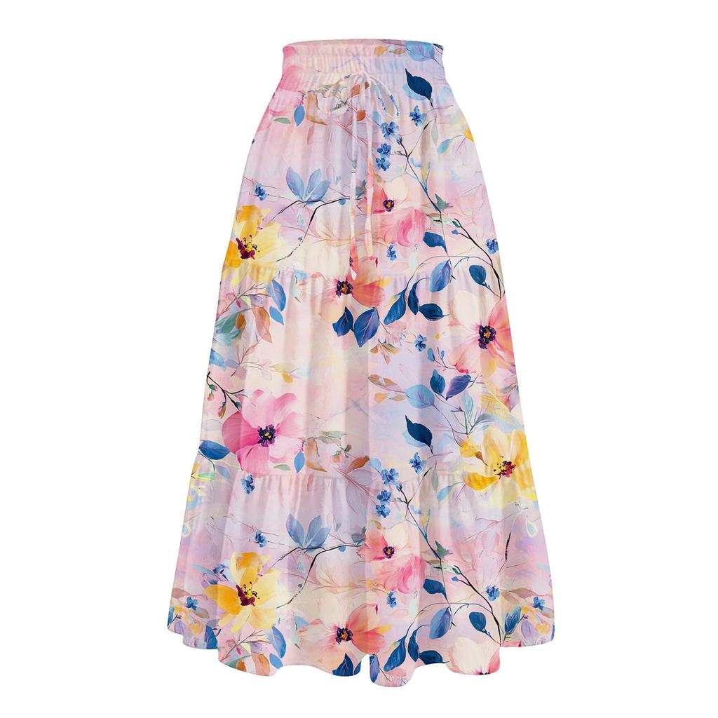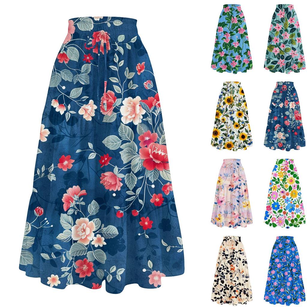 Женская повседневная и модная юбка с цветочным принтом и эластичным поясом, свободная юбка с талией