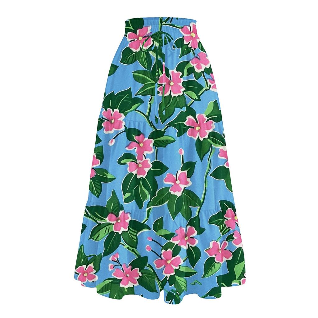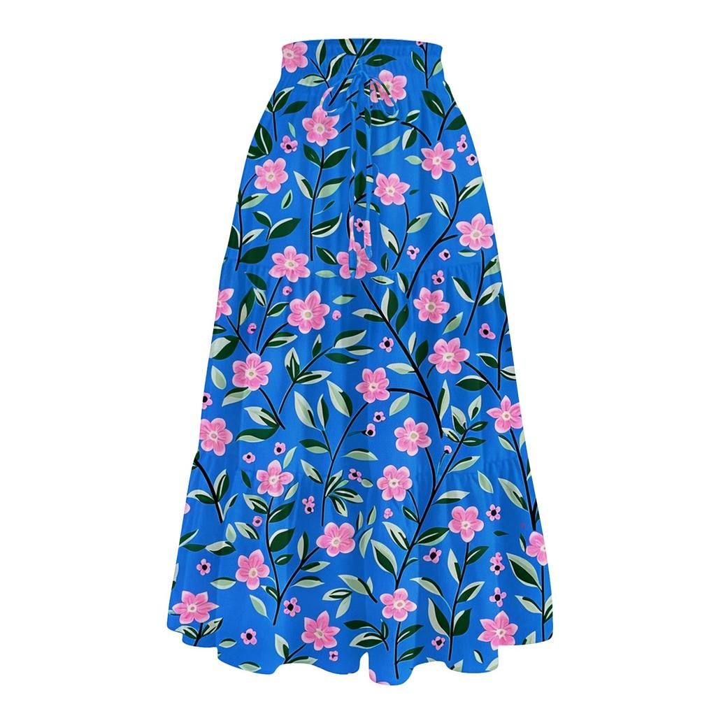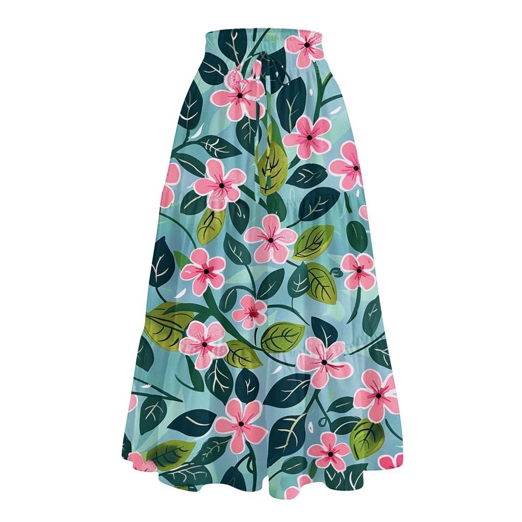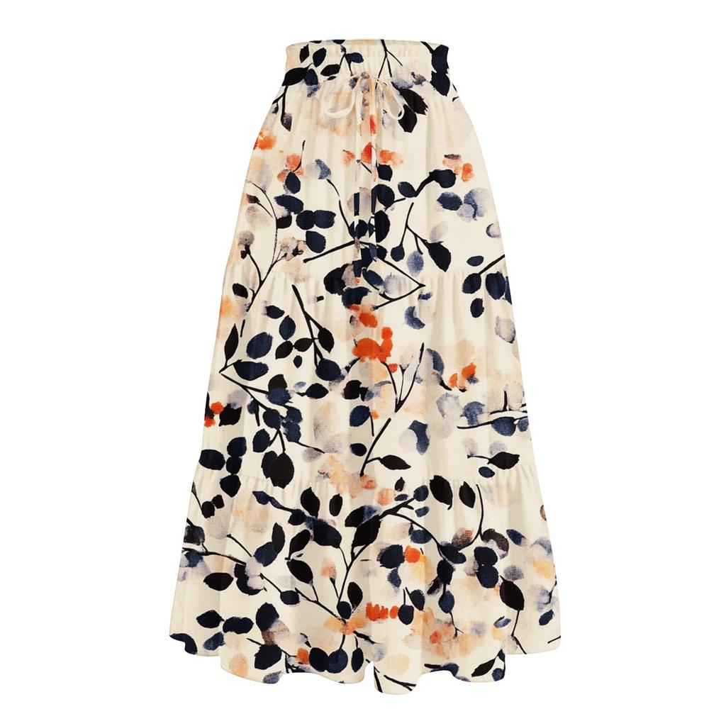 Женская повседневная и модная юбка с цветочным принтом и эластичным поясом, свободная юбка с талией