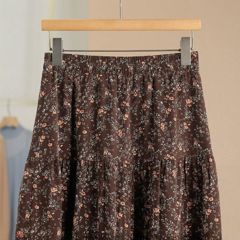Женская летняя юбка миди в стиле коттеджкор с цветочным принтом - Винтажный свежий А-силуэт для стройнящего и элегантного образа