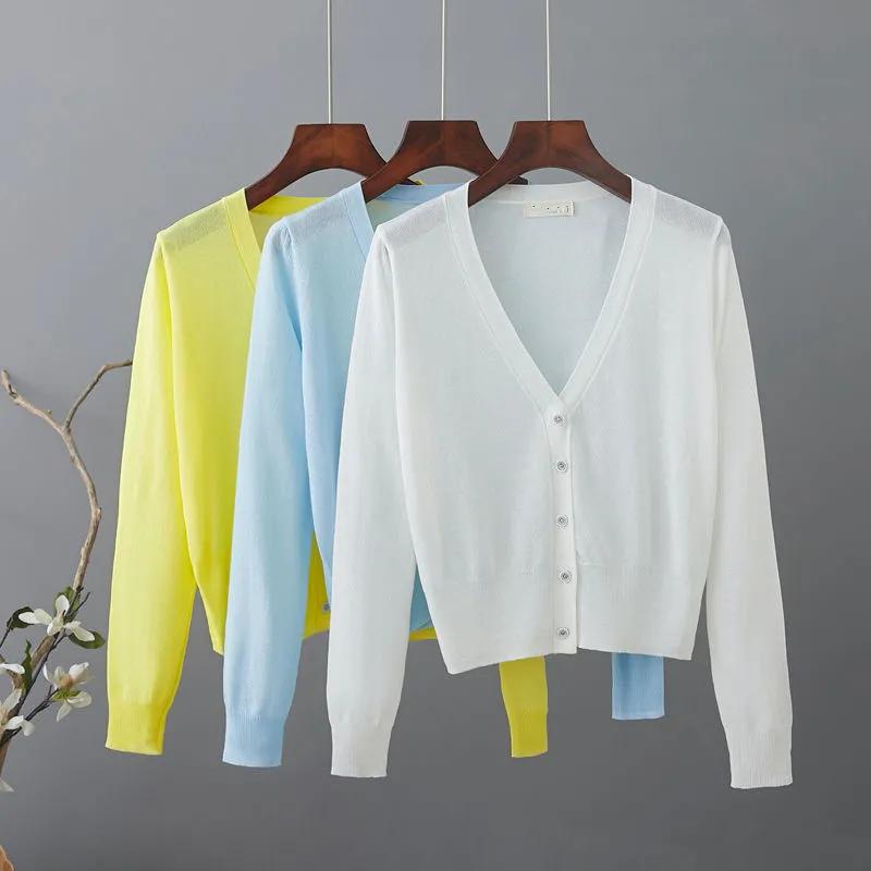 Женский весенне-летний солнцезащитный повседневный вязаный кардиган с V-образным вырезом, однобортный, с ажурной вязкой, тонкое пальто — купить товар онлайн с бесплатной доставкой по всему миру!