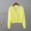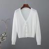 Женский весенне-летний солнцезащитный повседневный вязаный кардиган с V-образным вырезом, однобортный, с ажурной вязкой, тонкое пальто