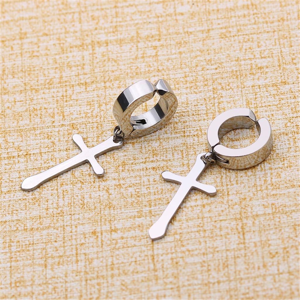 Non-pierced Clip On Cross Dangle Hoop Earrings Set, Stainless Steel No Piercing
