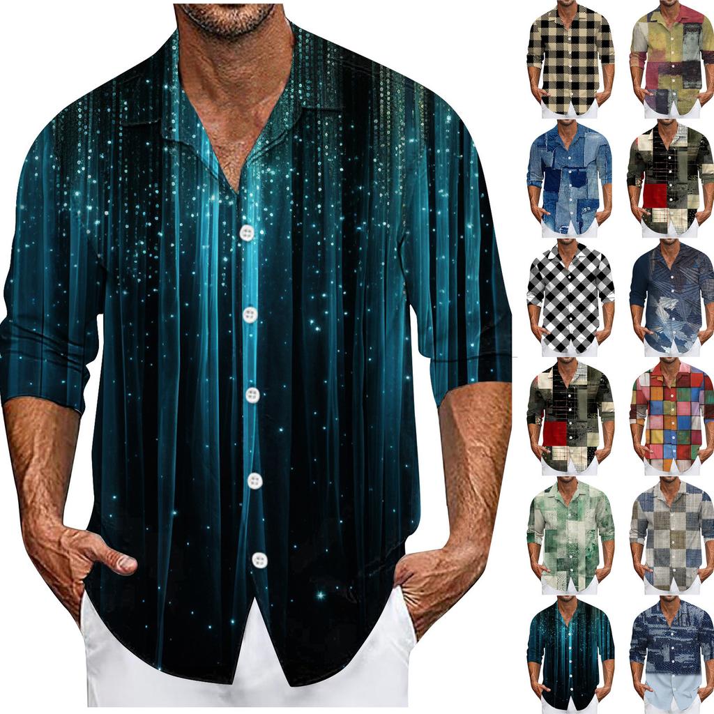Мужская летняя новая свободная рубашка с длинным рукавом с принтом, кардиган, пляжная рубашка