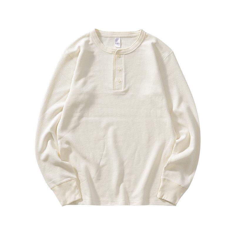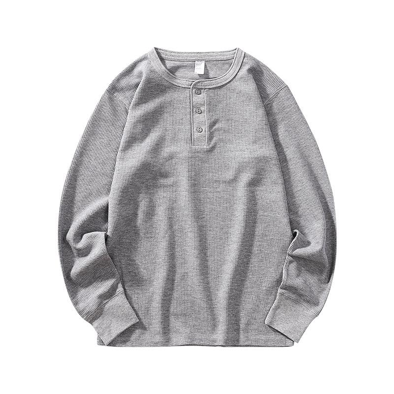 Мужская осенняя футболка с длинным рукавом из вафельной ткани в стиле ретро, плотная, свободного кроя, с воротником хенли