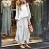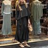 Женский свободный удобный повседневный модный однотонный топ с длинными рукавами, однотонная юбка, комплект из двух предметов