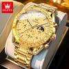 OLEVS 3618 Новые Модные Кварцевые Часы Светло-Голубого Цвета Мужские Нержавеющая Сталь Водонепроницаемые Люминесцентные Дата Фаза Луны Хронограф Мужские Часы