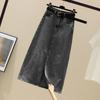 Джинсовая юбка с завышенной талией и разрезом сбоку для женщин, средней длины, А-силуэта, облегающая бедра, длинная юбка, модель весна-осень-лето