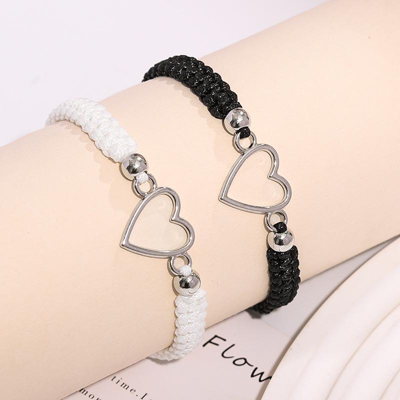 Креативный парный черно-белый браслет с вырезом, браслет 'Любовь', плетеный браслет пуш-пул, выдвижной браслет, регулируемый браслет — купить товар онлайн с бесплатной доставкой по всему миру!
