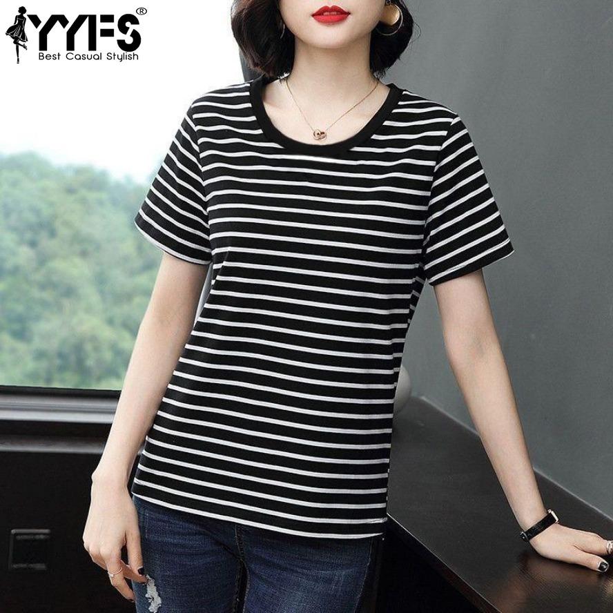 YYFS женские модные повседневные летние весенние блузки и рубашки с короткими рукавами и круглым вырезом в полоску с принтом — купить товар онлайн с бесплатной доставкой по всему миру!