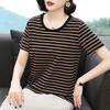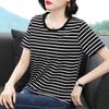 YYFS Женские модные повседневные летние весенние блузки и рубашки с круглым вырезом и короткими рукавами с полосатым принтом