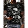 Футболка с персонализированным 3D-принтом Череп Смерти Летняя Новинка Мужская с круглым вырезом и коротким рукавом Европейская и американская трендовая большого размера