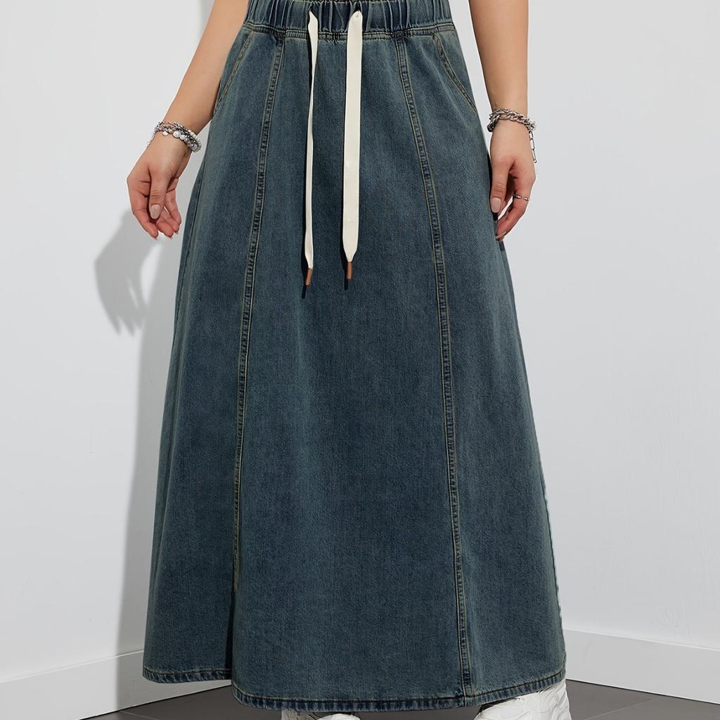 Американский Дизайн Чувство Эластичная Талия Свободная Большая Юбка Джинсовая Юбка Женская Повседневная Длинная Юбка