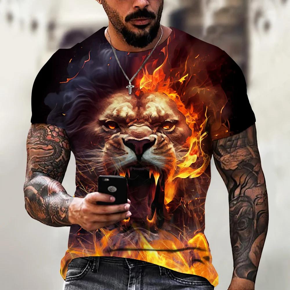 Летняя футболка с круглым вырезом, 3D-принтом сражающихся животных, свирепых тигров, львов, леопардов, модная, повседневная, с коротким рукавом, мужская