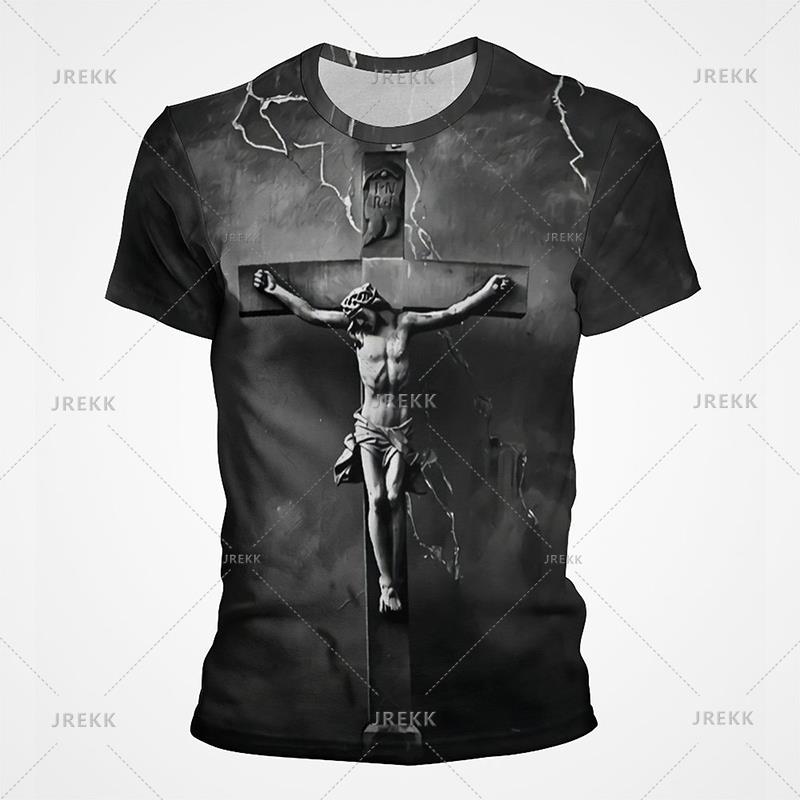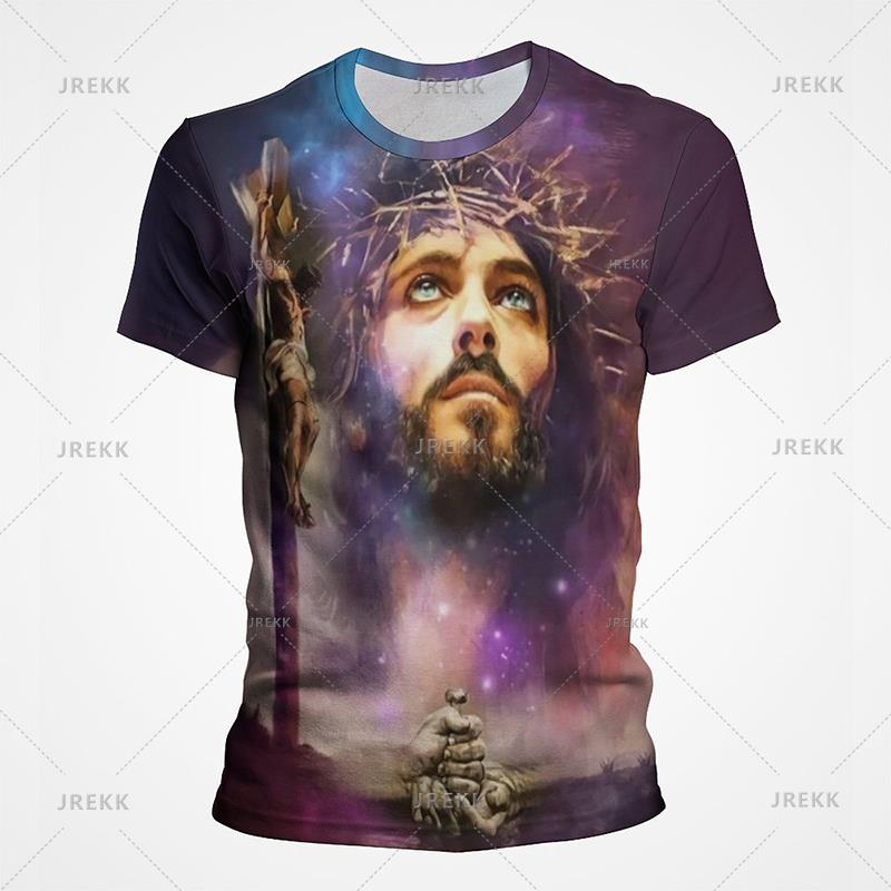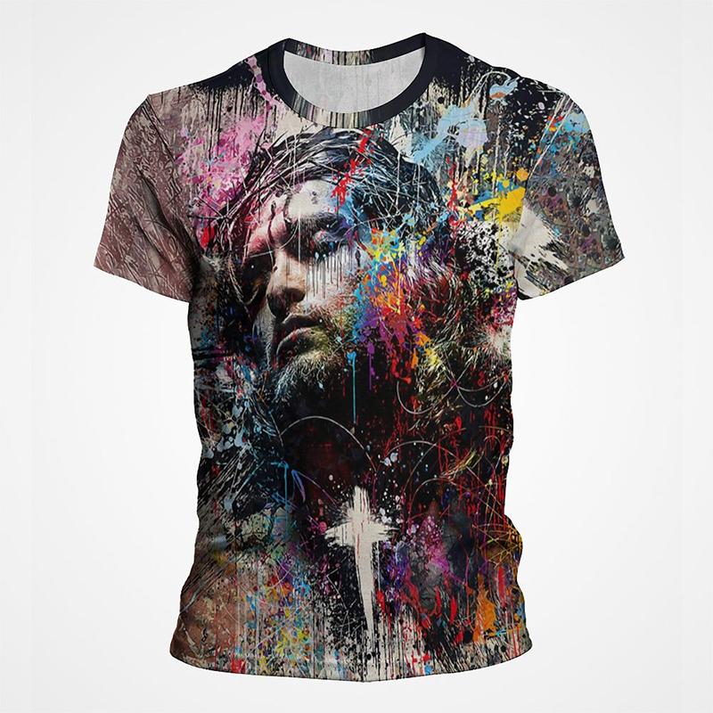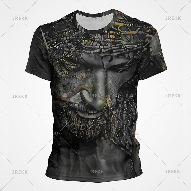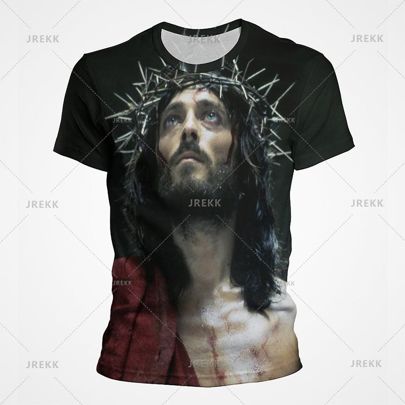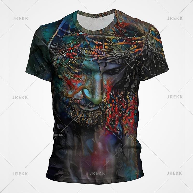 Летний топ с круглым вырезом и 3D-принтом Христа Иисуса, модная повседневная мужская футболка с короткими рукавами