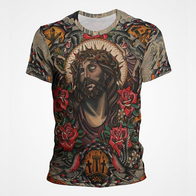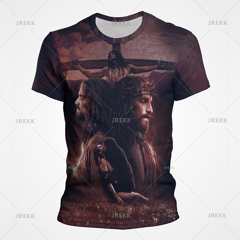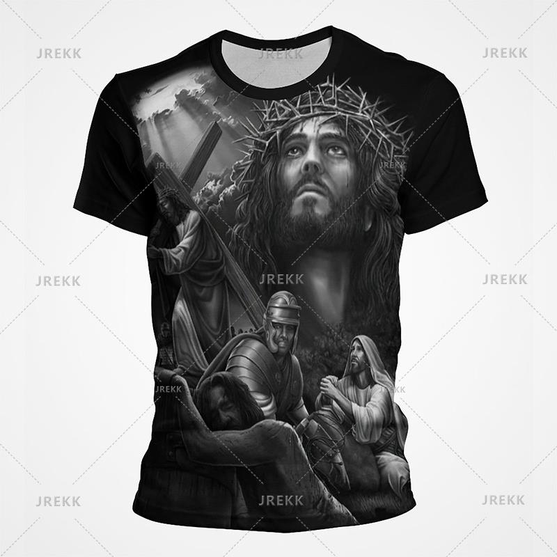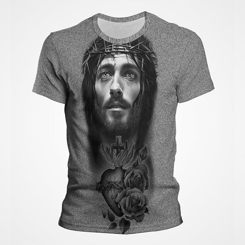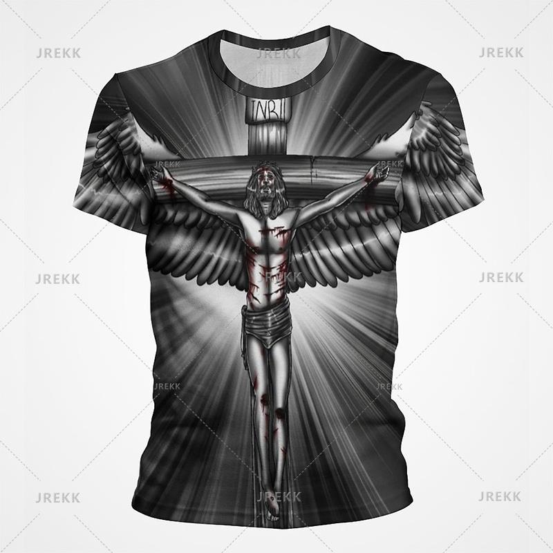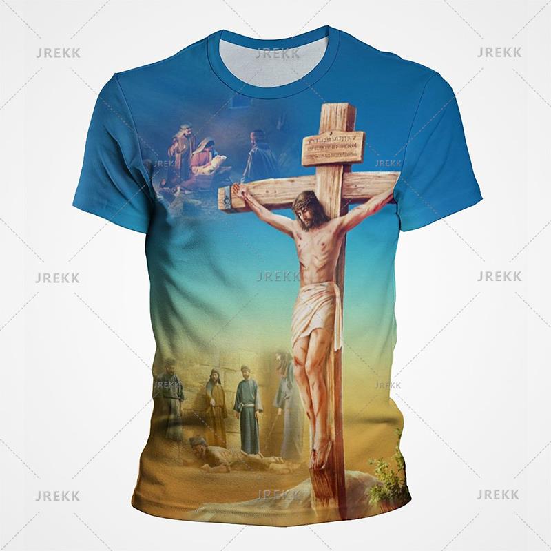 Летний топ с круглым вырезом и 3D-принтом Христа Иисуса, модная повседневная мужская футболка с короткими рукавами