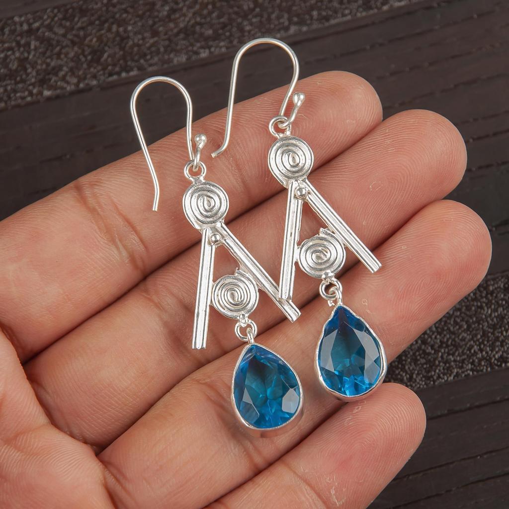 Украшения из швейцарского голубого топаза из серебра 925 пробы, Великолепные серебряные серьги ручной работы, Украшения с топазом для любви