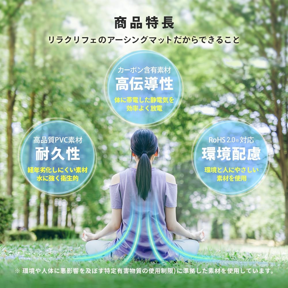 [Note] Correct measurements cannot be made with an electromagnetic wave measuring device to check whether earthing is done or to measure the electric field. Be sure to check with the earthing measurement kit. *In the unlikely event that your body has a bad reaction, the instructions will also include instructions on what to do. If you contact us directly, we will listen to you and advise you on the appropriate course of action. Earthing can be done by connecting to the earth using a cord. If the cord is not used, static elimination (discharge) is possible. Static elimination (discharge) has the characteristic that electricity gathers in places where it can easily flow. When a certain amount or more gathers, an electric discharge occurs. However, please note that there is no cord required (wireless) and you cannot connect to the earth with earthing.