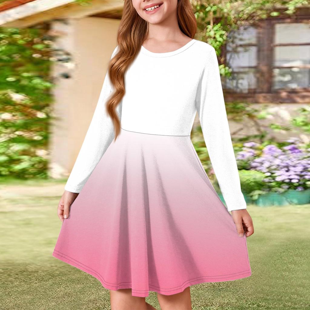 Летнее платье принцессы для девочек - платье-футболка А-силуэта с длинными рукавами
