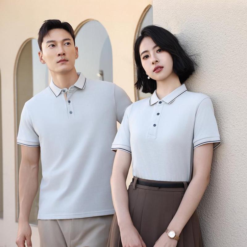 Летняя повседневная рубашка Командный топ для мужчин и женщин Отложной воротник Короткий рукав Однотонная футболка YG-246