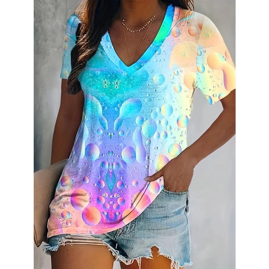 Женская футболка с V-образным вырезом, тай-дай, повседневная летняя, обычной длины, с ярким дизайном в стиле колор-блок — купить товар онлайн с бесплатной доставкой по всему миру!