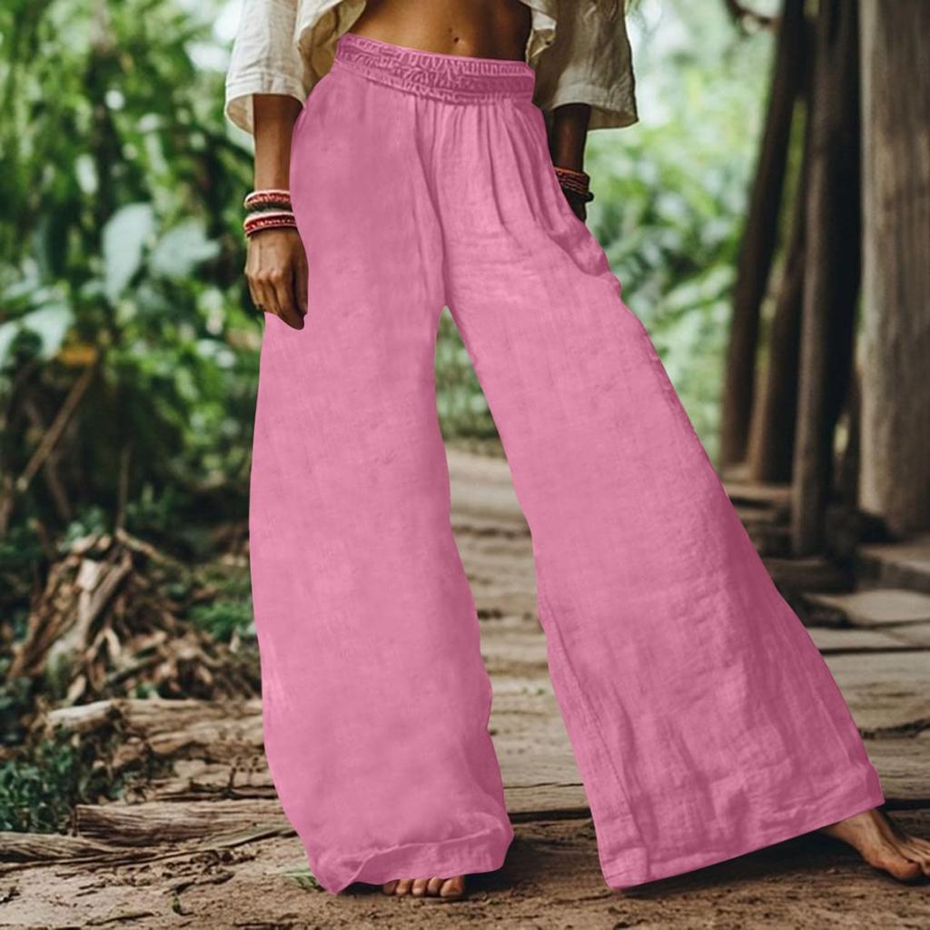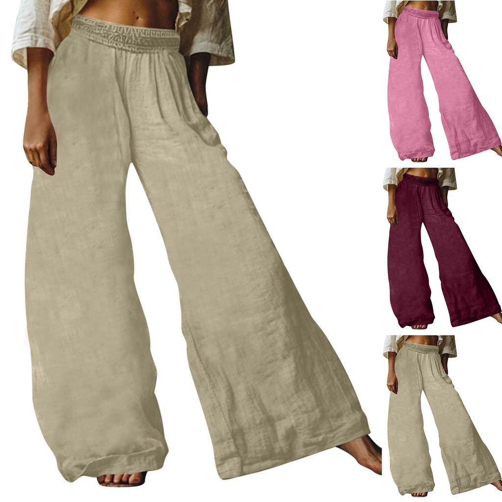Брюки-карго женские хлопковые льняные с пуговицами на резинке на талии широкие брюки летние свободные брюки для бега с карманом