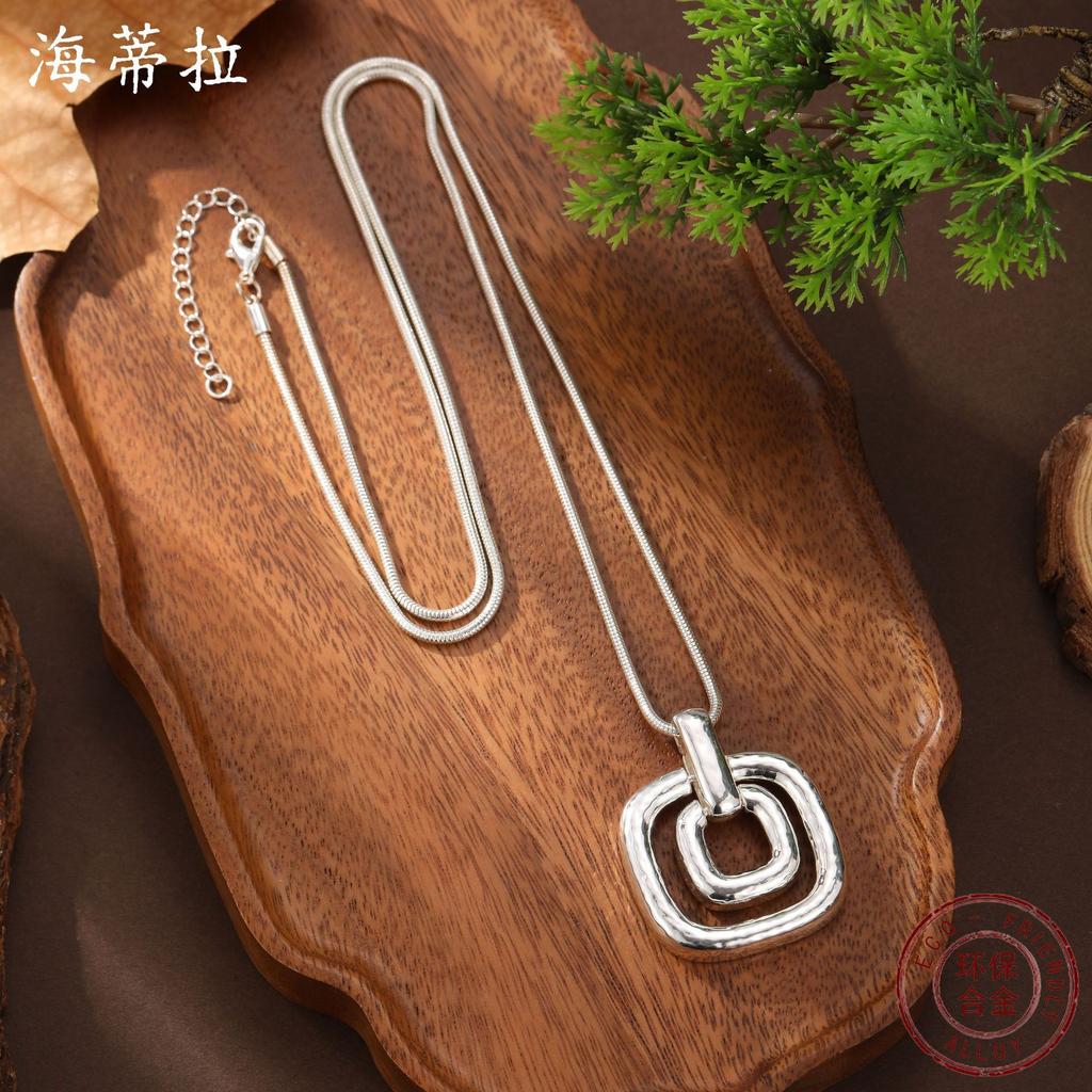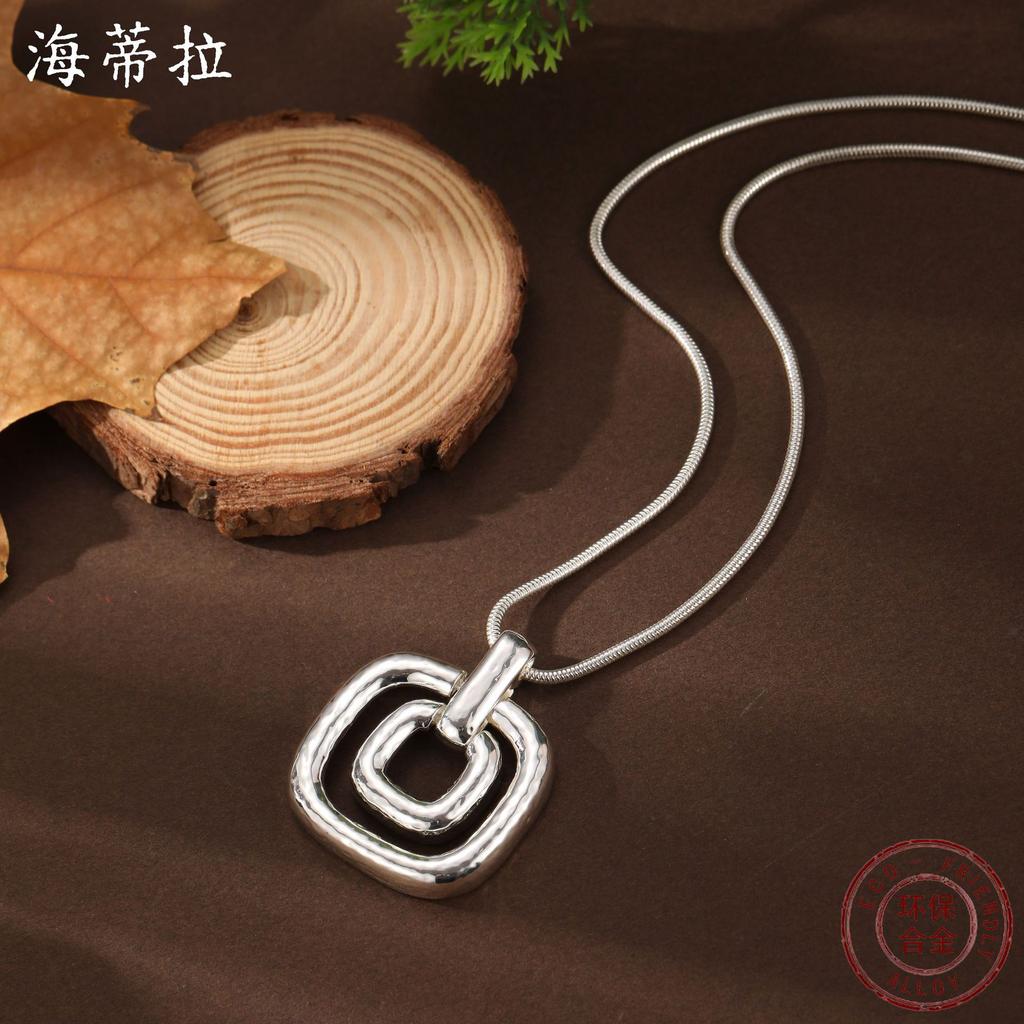 Новая полая геометрическая квадратная подвеска, женская модная, простая и высококлассная полая квадратная шейная цепочка