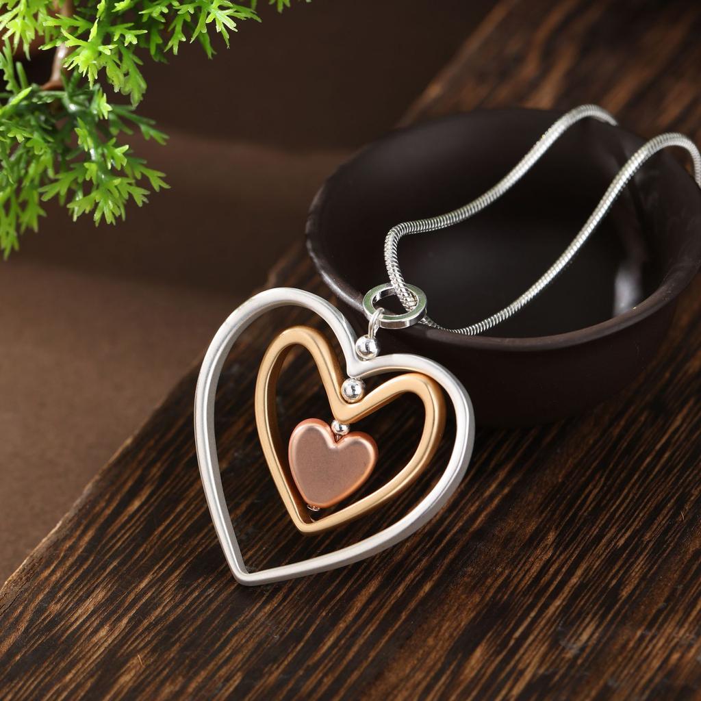 Новый матовый трехслойный полый кулон в виде сердца, женское полое вращающееся сердце, универсальное длинное ожерелье
