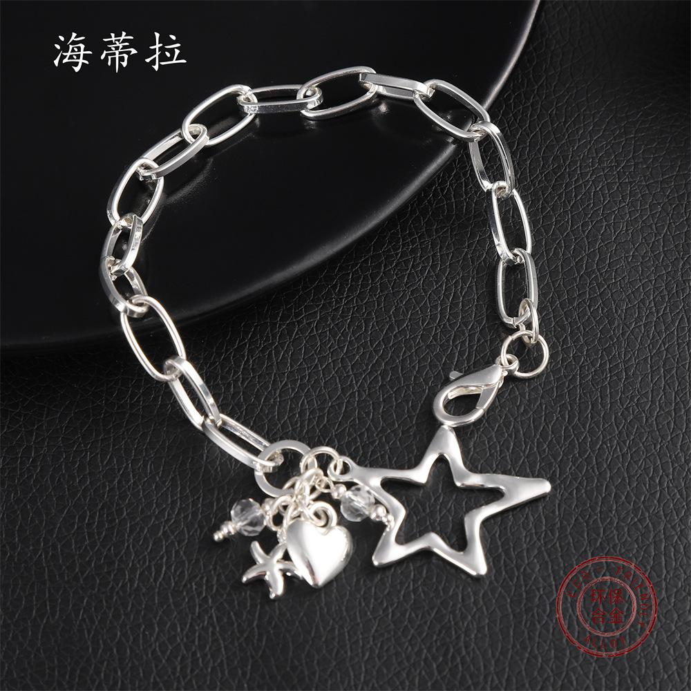 Новый толстый браслет-мультиаксессуар с цепочкой, звездой любви и милой пятиконечной звездой-подвеской, парный браслет