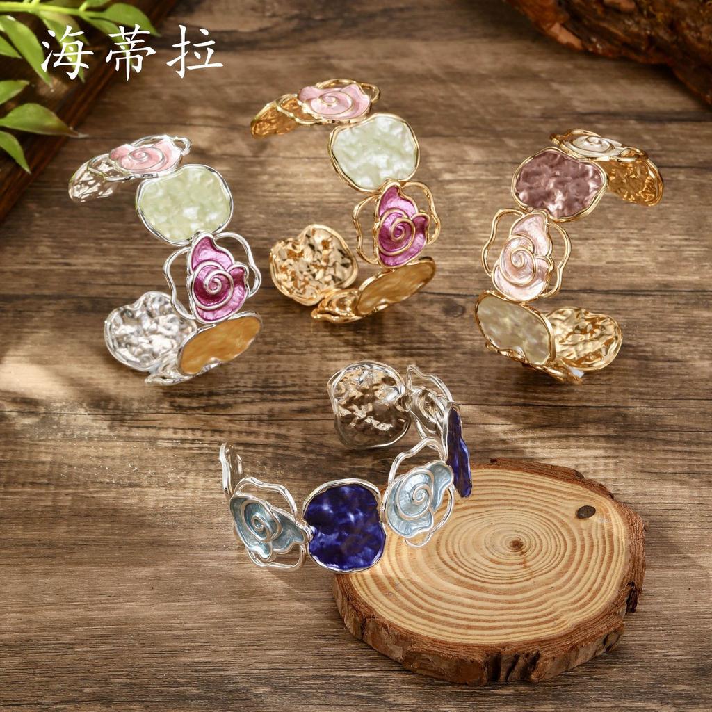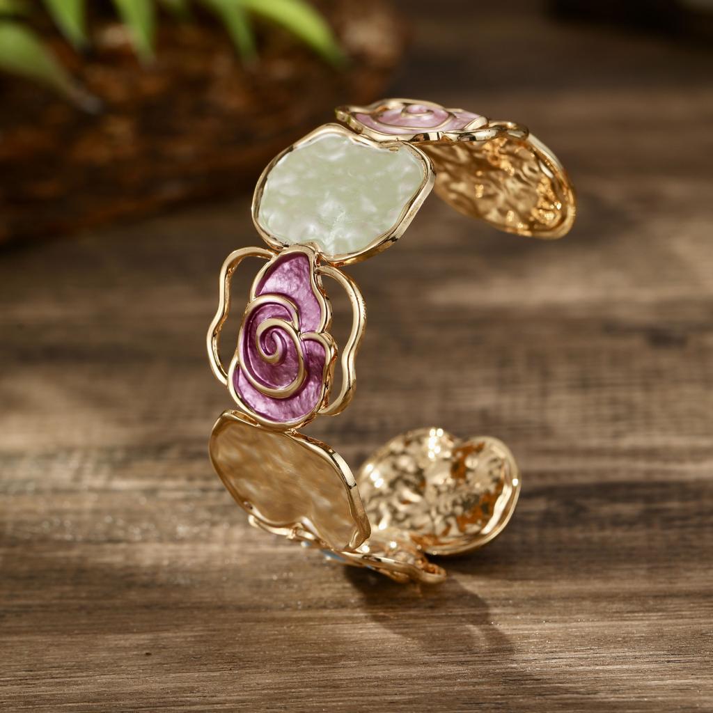 Цветная масляная роспись, браслет-манжета с полым цветком розы, женский премиальный браслет «облако» на День святого Валентина