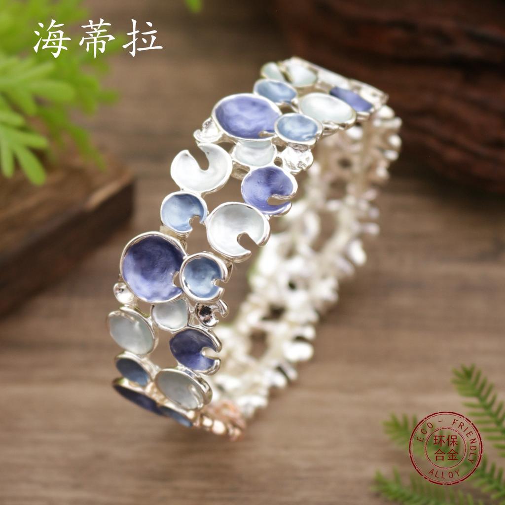 Эмалевый геометрический лепестковый эластичный браслет, женский модный высококлассный цветочный сплавный браслет