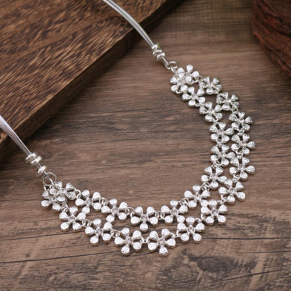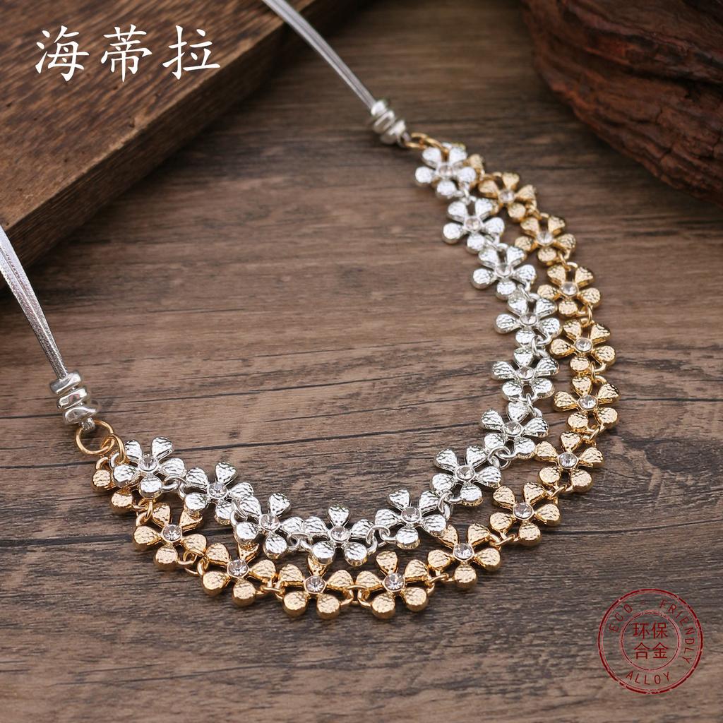 Новое металлическое ожерелье-стек из бриллиантовых цветов, женское высококлассное двухслойное цветочное ожерелье-стек для банкета