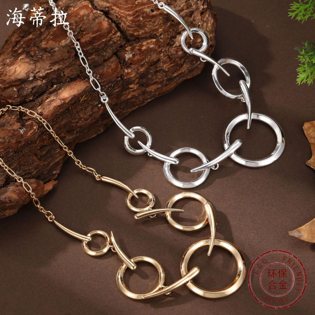 Новое гладкое полое геометрическое кольцо-ожерелье, женское модное высококлассное полое ожерелье с круглым вырезом