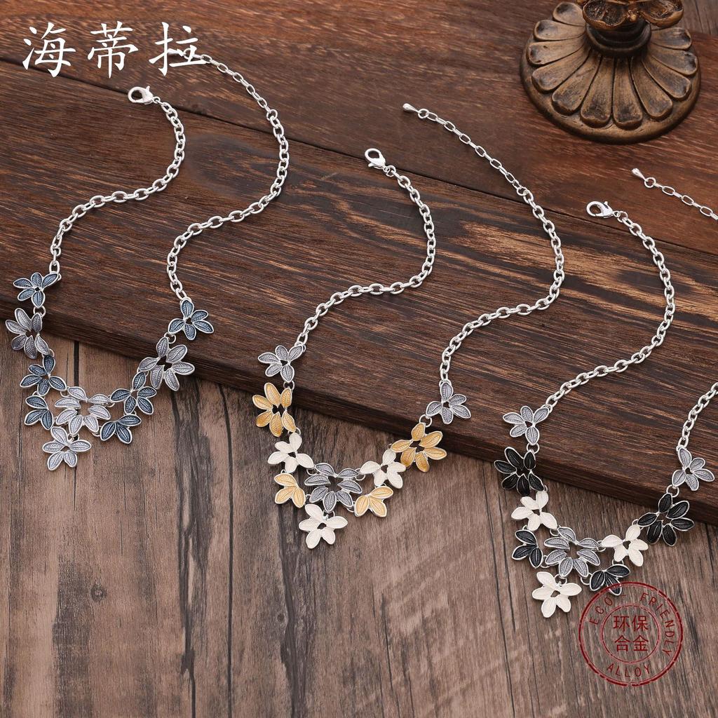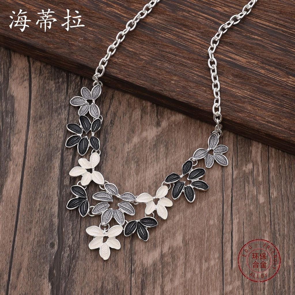 Ожерелье из сплава золотого цвета с лиственным плетением, модная женская цепочка на шею с цветной эмалью, колье-цепочка для ключицы