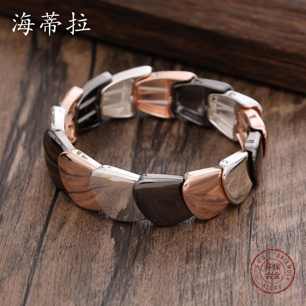 Глянцевый трехцветный браслет из сплава с плетением «рыбья чешуя», хип-хоп, преувеличенный, модный эластичный браслет для мужчин и женщин
