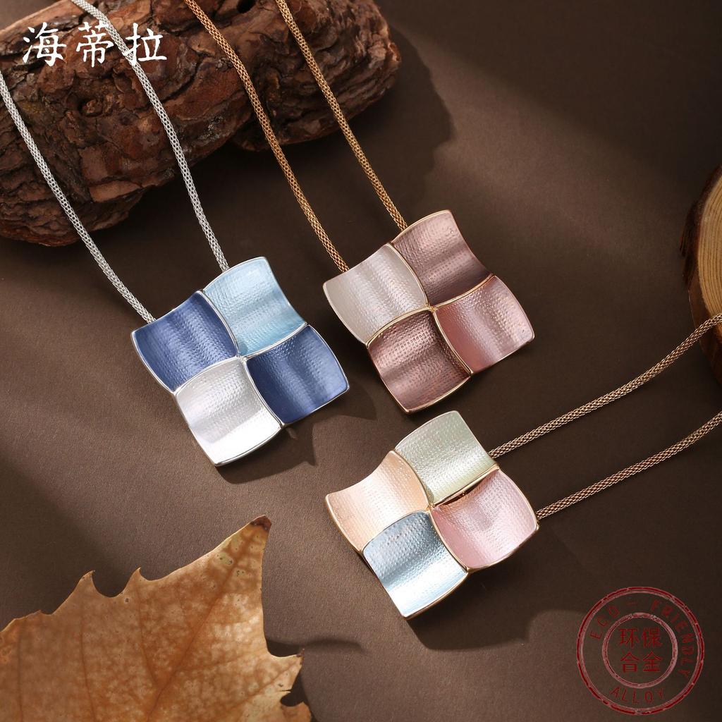 Новая эмалевая геометрическая квадратная подвеска, женское высококлассное квадратное универсальное ожерелье.