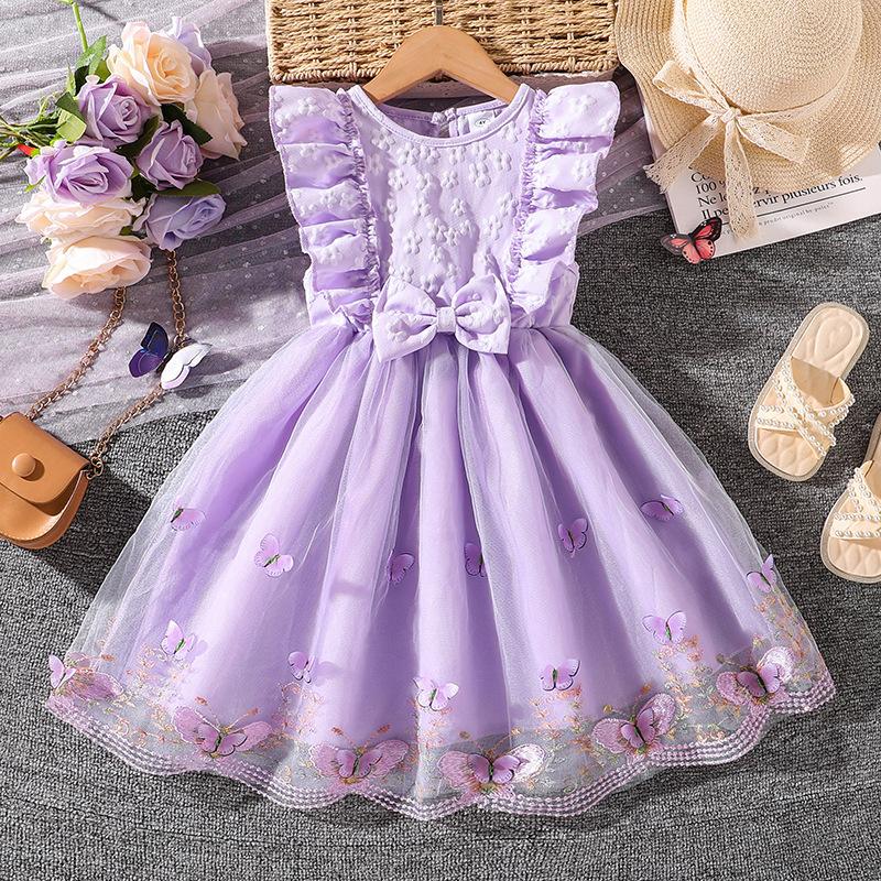 2025 Новые летние платья для девочек Сладкая бабочка Сетка 3D цветок Без рукавов Платья принцессы для детей