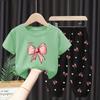 Летний комплект из 2 предметов для девочек: футболка с коротким рукавом и брюки с принтом бантика, детский костюм для одежды, детская одежда
